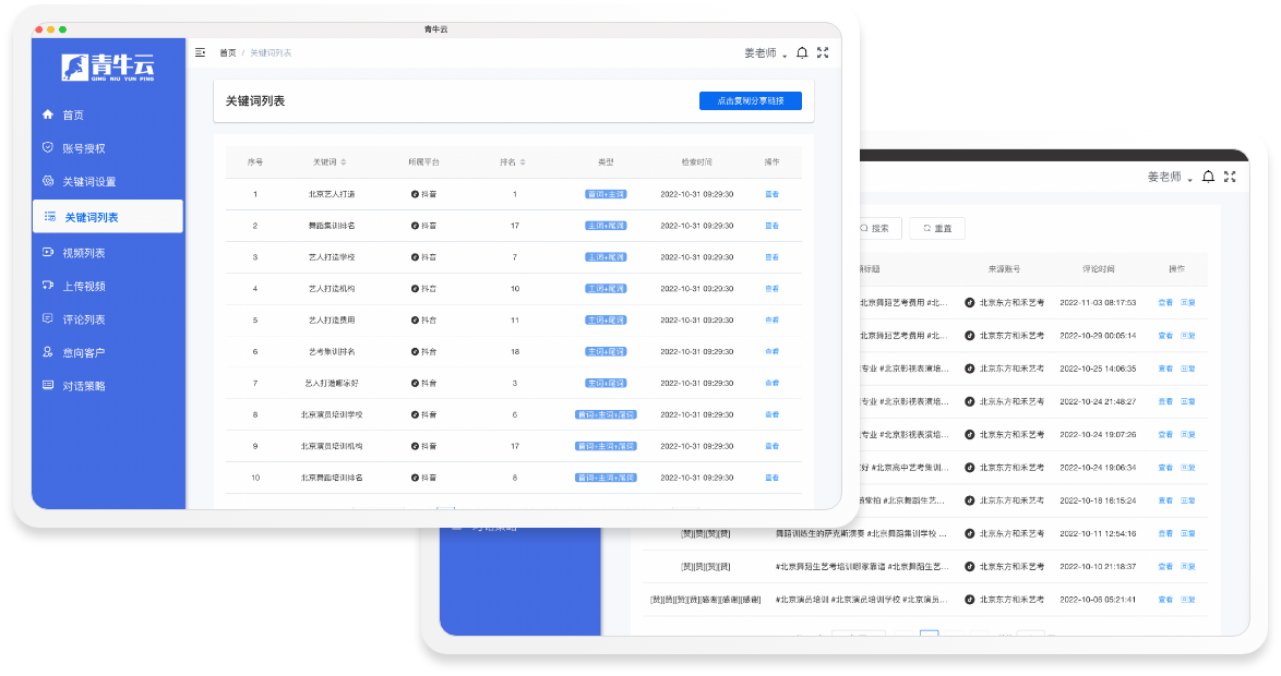 自从客户与我们合作以来,我们为客户打造了蓝v账号,并进行统一的数据管理,视频制作、发布。客户转化。